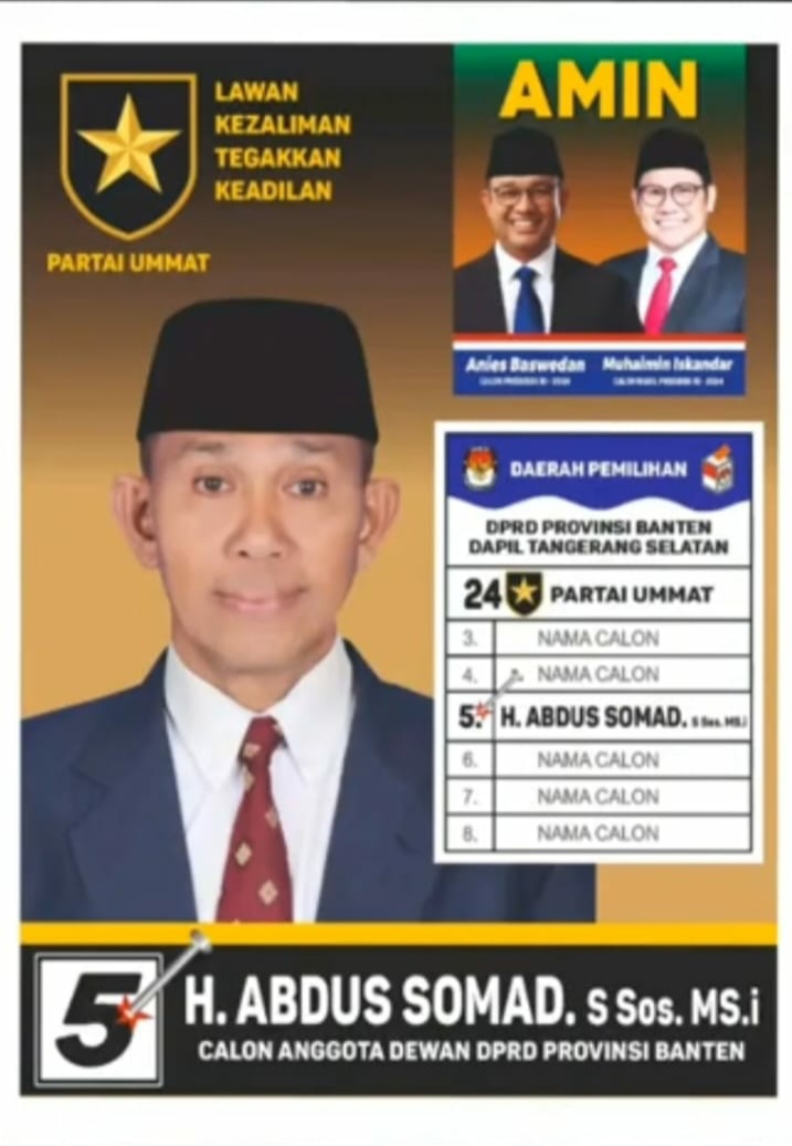 H. Abdus Somad S.Sos, M.Si yang mencalonkan diri sebagai Caleg dari partai Ummat Dapil Tangsel Propinsi Banten nomor urut 5 mengatakan kepada para awak media ketika beliau bertamu di Kantor salah satu Dinas di Tangsel, saya pikir hampir setiap orang punya motivasi dan visi misi pada saat ia mencalonkan diri sebagai Caleg bukan saya saja.