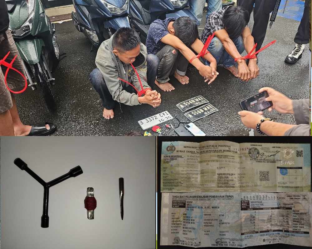 Dalam pengungkapan tersebut, polisi mengamankan sejumlah barang bukti berupa dua unit sepeda motor Honda Beat, satu set kunci letter T beserta mata kuncinya, STNK hasil curian, uang tunai, telepon genggam, serta rekaman CCTV yang memperkuat alat bukti.