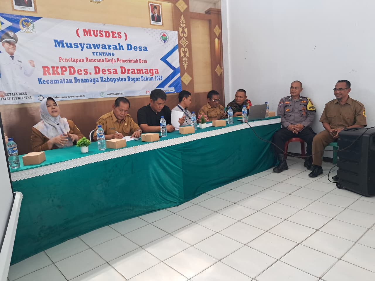 Bhabinkamtibmas Desa Dramaga pun hadir dalam acara Musdes tentang Penetapan Rencana Kerja Pemerintahan Desa Dramaga tahun anggaran tahun 2026 yang juga dihadiri oleh Sekcam Dramaga, Kepala Desa Dramaga, Ketua BPD, Babinsa, Bhabinkamtibmas, para Kepala Sekolah se Desa Dramaga, Lembaga Pemberdayaan Masyarakat Desa, Ketua Bumdes, Kepala Dusun dan Ketua RT, Toga, Tomas, Karang Taruna, dan juga IPSM Desa Dramaga.
