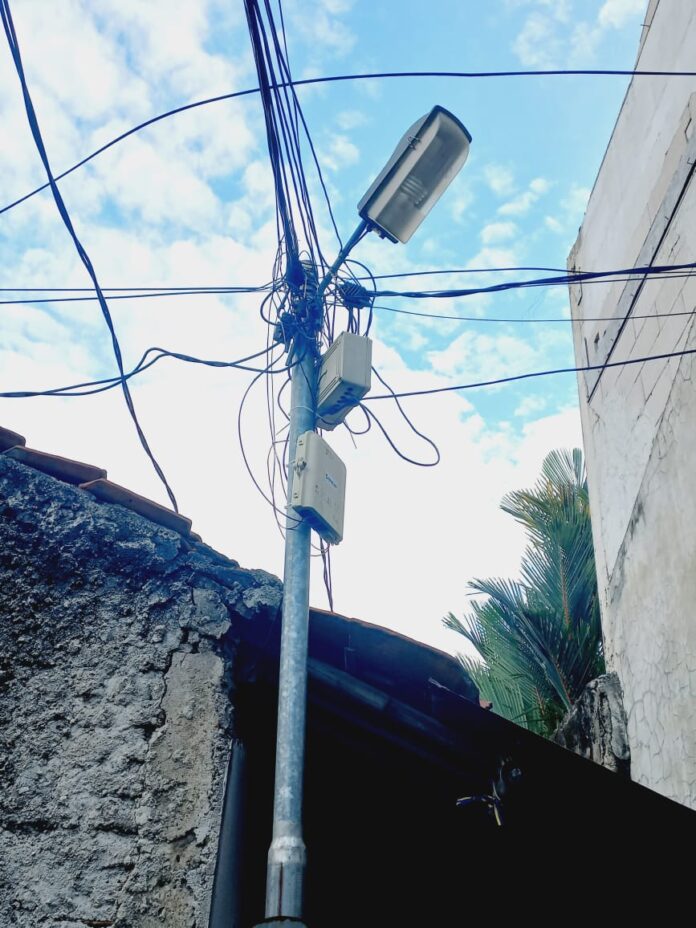 Lenteraindonesia.net, Kota Tangerang – Diduga belum miliki izin pemasangan perangkat box WiFi bermerek “TARMOC” terpasang disejumlah tiang Penerangan Jalan Umum (PJU). Di RT 06 RW 01, Kelurahan Kebon Besar, Kecamatan Batuceper, Kota Tangerang, mendapat sorotan. Selain dinilai semerawut, keberadaan alat tersebut diduga melanggar aturan karena memanfaatkan tiang milik pemerintah daerah tanpa izin yang jelas.