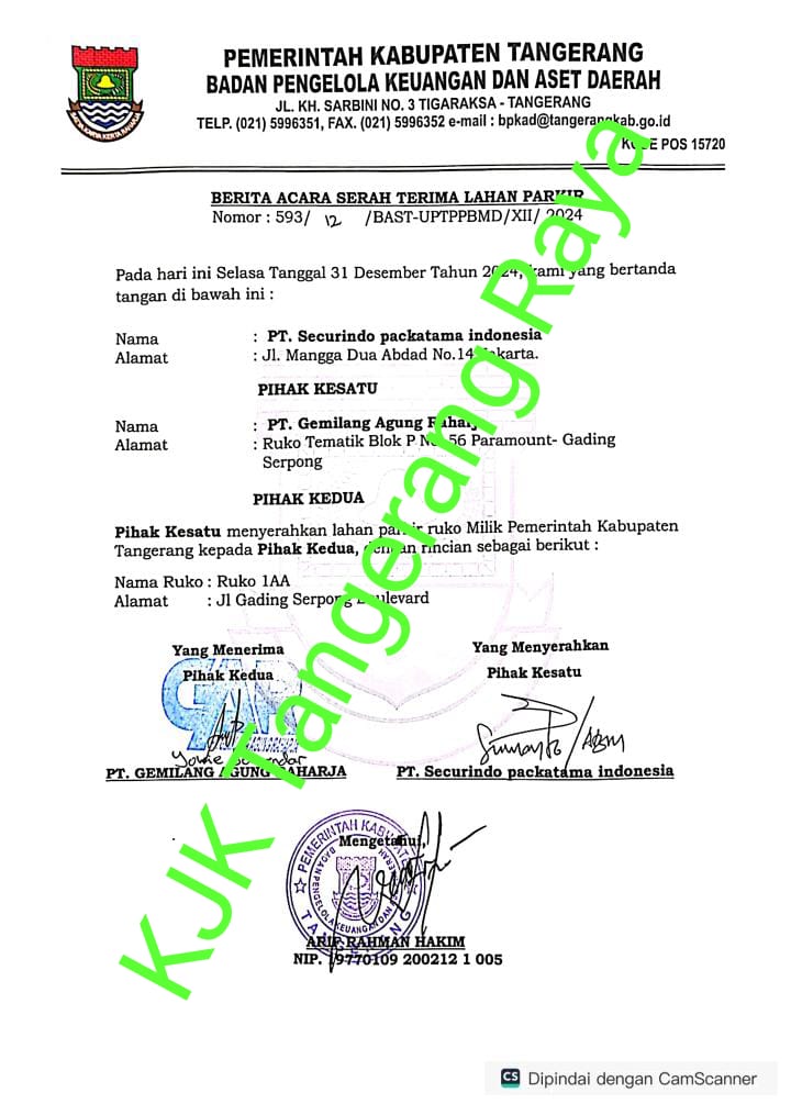 “Kita akan gelar Audensi dan aksi kepada Bupati Tangerang untuk menuntaskan permasalahan ini, bahkan bila perlu kita akan gelar perkara dan melapor oknum yang peran serta dan tidak memihak kepada warga sebagai Kearifan Lokal. Kita menduga terbit Surat Dari BPKAD Kabupaten Tangerang Nomor. 593/12/BAST-UPTPPBMD /XII/2024. Palsu akibatnya menimbulkan masalah besar, lantaran sebelum surat itu terbit Kita terlebih dahulu menyurati kepada Bupati Tangerang terkait permasalahan ini,” pungkasnya.