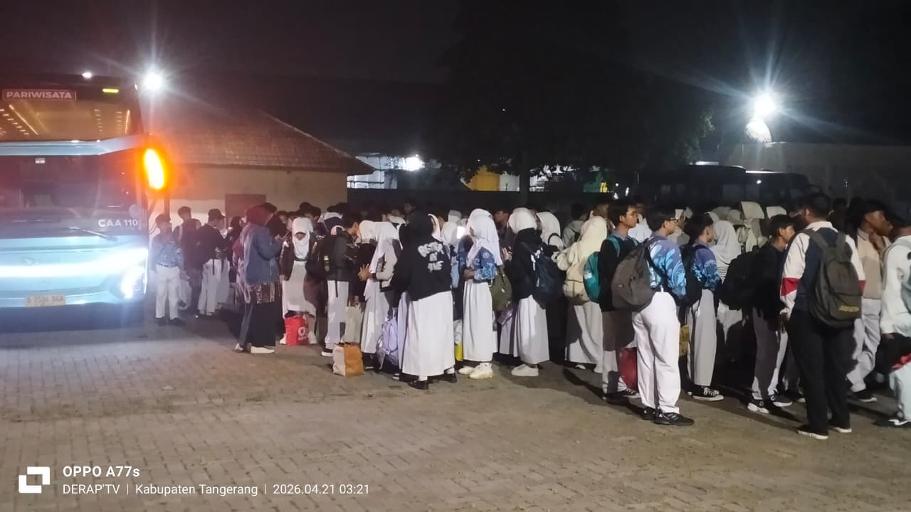 Lenteraindonesia.net | TANGERANG — Di tengah kebijakan pemerintah yang masih mendorong sistem kerja fleksibel atau Work From Home (WFH), kegiatan ekstrakurikuler yang diselenggarakan oleh SMP Negeri 5 Curug ke Bandung justru menuai sorotan publik, Selasa dini hari (21/4/2026) sekitar pukul 04.00 WIB.
