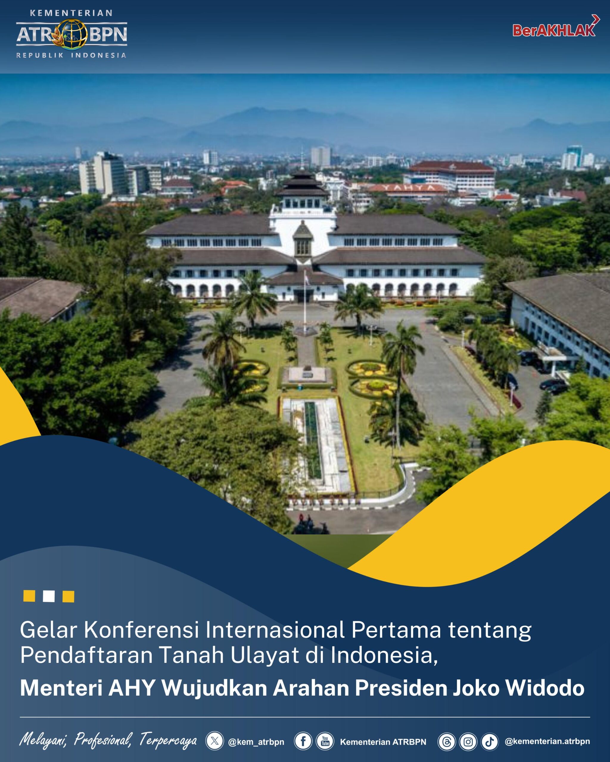 Lenteraindonesia.net, Bandung – Menteri Agraria dan Tata Ruang/Kepala Badan Pertanahan Nasional (ATR/BPN), Agus Harimurti Yudhoyono (AHY) akan membuka Konferensi Internasional pertama tentang Pendaftaran Tanah Ulayat di Indonesia, Kamis (05/09/24). Acara yang diselenggarakan pada 4-7 September di Kota Bandung ini mengangkat tema “Best Practices of Ulayat Land Registration in Indonesia and ASEAN Countries: Socialization of Ulayat Land in Indonesia”.