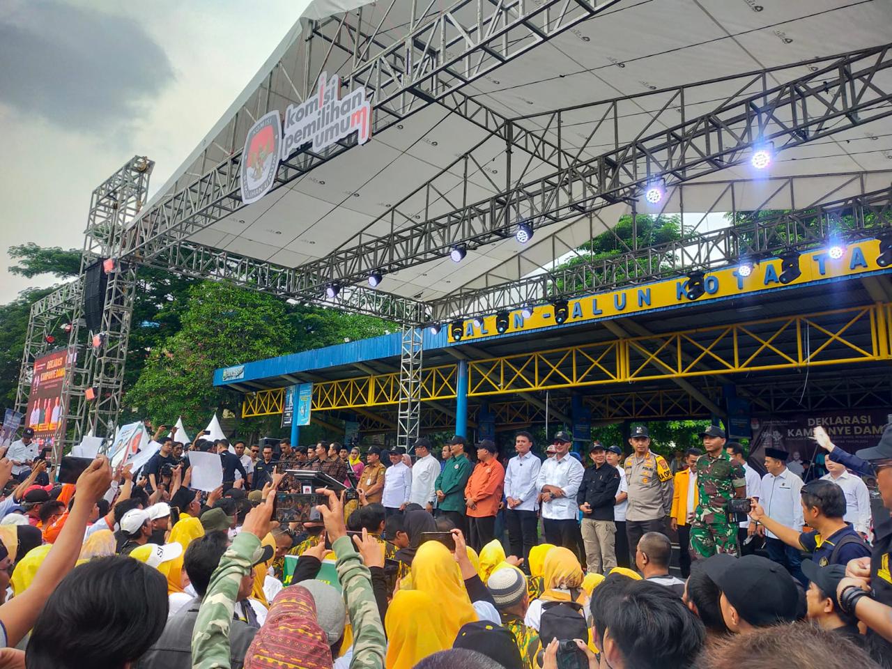 Deklarasi kampanye pilkada damai 2024, tahun ini Berlangsung di Alun-alun Ahmad Yani, Kota Tangerang, Banten. ( Red )