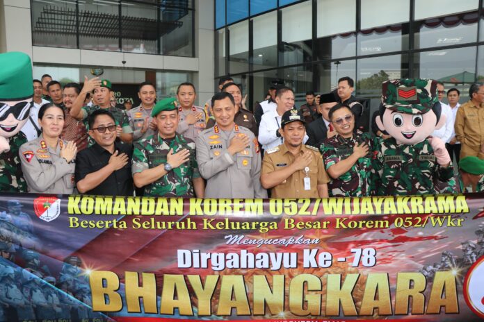 “Seluruh keluarga besar Korem 052/Widyakrama mengucapkan selamat hari ulang tahun (HUT) Bhayangkara ke-78, semoga semakin profesional, semakin dicintai rakyat dimana Polri sebagai pelindung, pengayom dan pelayan masyarakat,” kata TNI Krido Pramono.