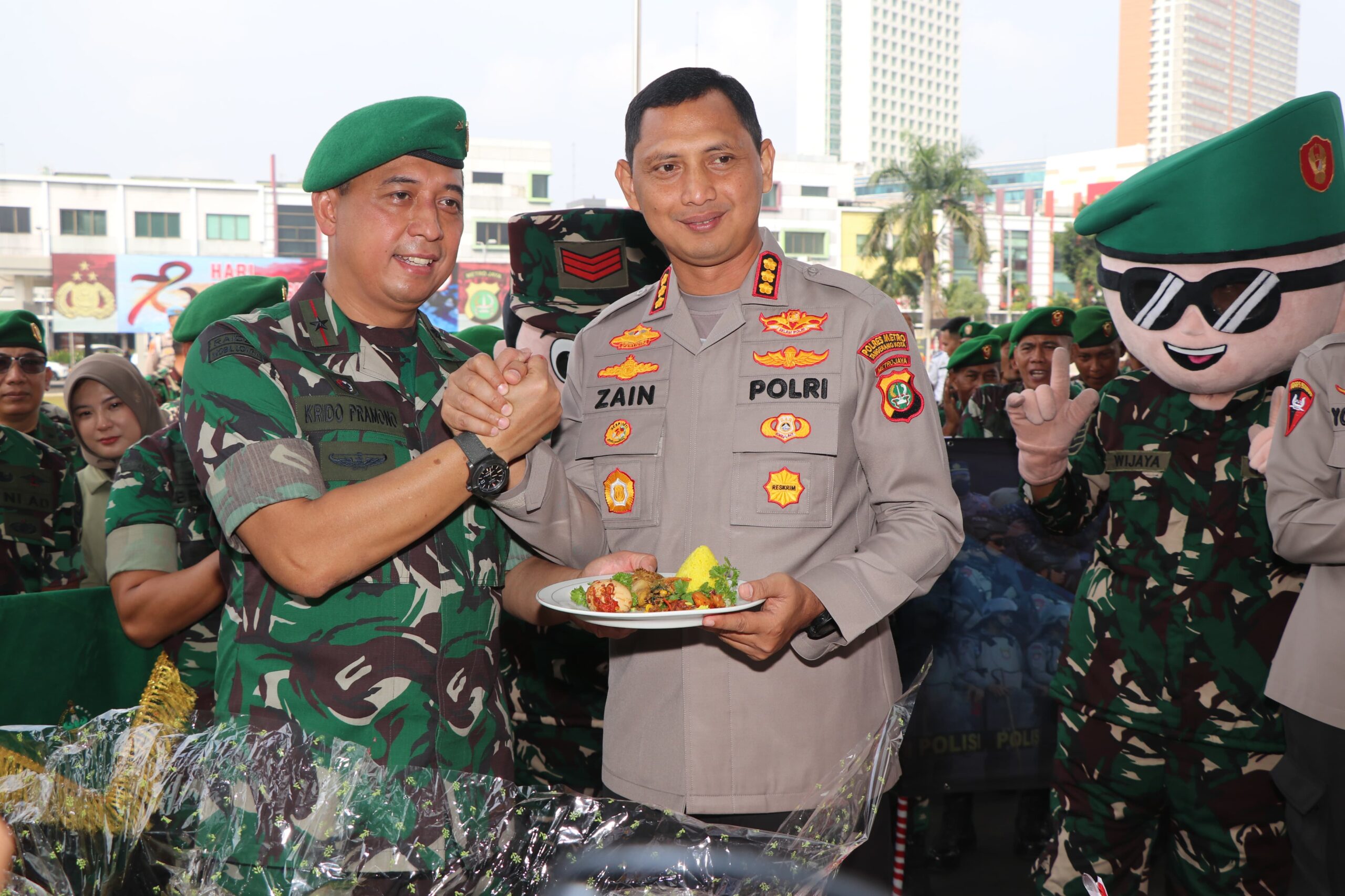 Kapolres, Komisaris Besar Polisi Zain Dwi Nugroho bersama Waka Polres Metro Tangerang Kota, AKBP Yolanda Evalyn Sebayang dan beberapa pejabat utama (PJU) menyambut hangat kedatangan puluhan anggota TNI tersebut.