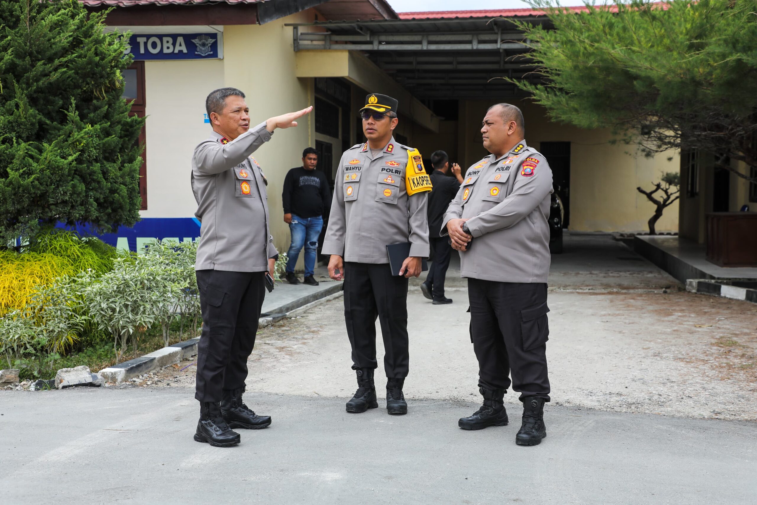 Saat kunjungan di Mako Polres Toba Kapolda Sumut Irjen Pol Agung Setya Imam Effendi didampingi oleh sejumlah pejabat utama Polda Sumut di antaranya Karo SDM Polda Sumut Kombes Pol Bony Johannes Sanganadi Sirait, S.I.K.