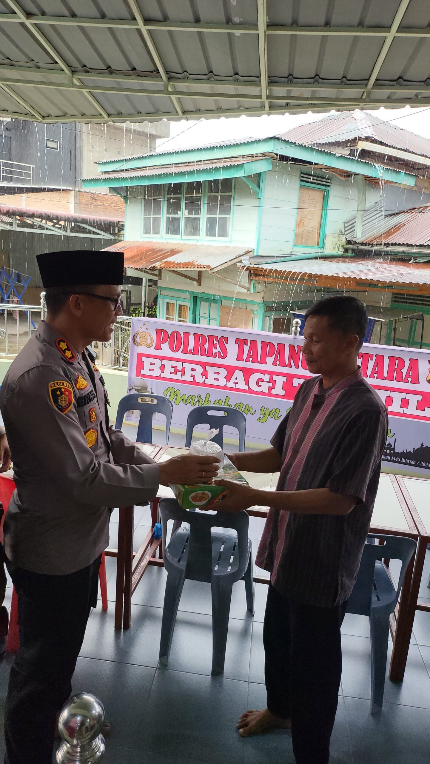 Sedang Wakapolres bersama rombongan personil polres, melangsungkan kegiatan membagi Takjil dan Nasi kotak di Mesjid Hati Nurani Tarutung.