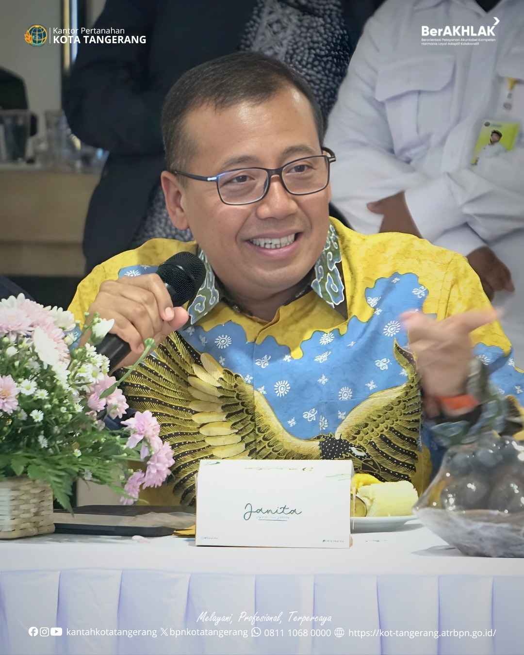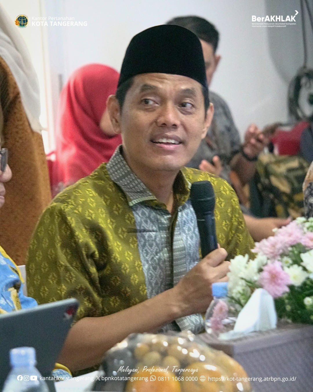 Turut hadir dalam kegiatan tersebut Staf Ahli Menteri ATR/BPN Bidang Teknologi Informasi Dwi Budi Martono, Sekretaris Ditjen Penetapan Hak dan Pendaftaran Tanah Sudaryanto, serta Kepala Kanwil BPN Provinsi Banten Harison Mocodompis. Rombongan disambut oleh Kepala Kantor Pertanahan Kota Tangerang, Tardi bersama jajaran.