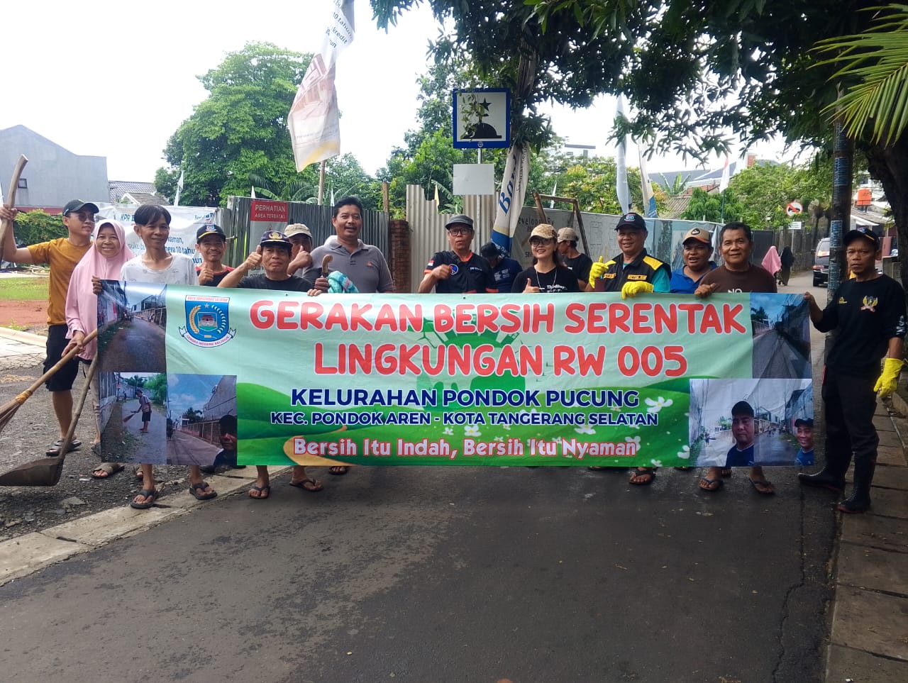Seperti hal nya di wilayah RT 01 / 05 Kelurahan Pondok Pucung Kecamatan Pondok Aren di bawah pimpinan RT Sarpan yang akrab di sapa Capon beserta warga nya dengan semangat mengikuti kerja bhakti untuk membersihkan wilayah RT 01/05 demi tercipta nya lingkungan yang bersih dr sampah Got yang mampet pun di bersihkan secara bersama sama agar lingkungan terbebas dari banjir.