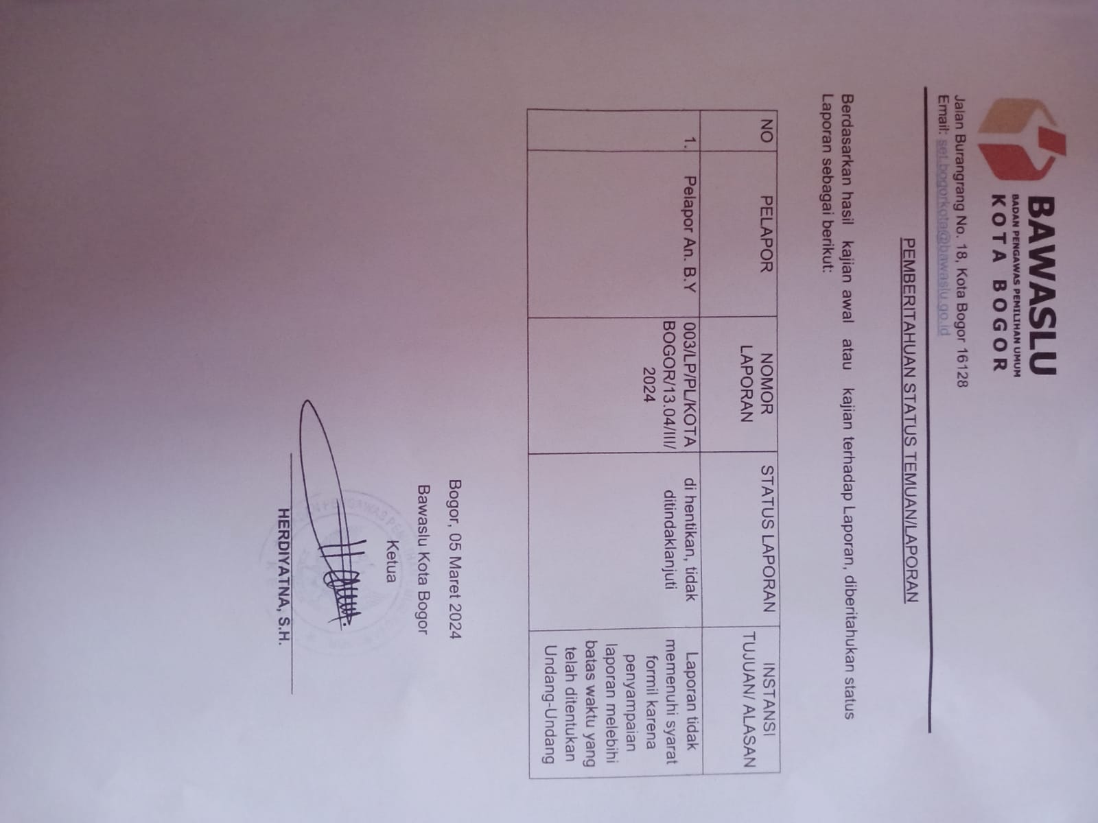Namun Herdi sangat menyayangkan karena setelah di Rapat Plenokan ternyata aduan tersebut, tidak dapat ditindak lanjuti karena batas waktunya sudah lewat, ” kalau saja aduan tersebut kami terima maksimal 7 hari setelah pencoblosan, mungkin aduan tersebut akan kami tindak lanjuti, akan tetapi aduan tersebut baru kami terima kurang lebih nya minggu kemarin “, ujar Herdi.