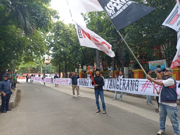 Aksi ini menuntut ketua Badan Kepegawaian dan Pengembangan Sumber Daya Manusia ( BKPSDM) Kota Tangerang, untuk menemui elemen masyarakat yang menyerukan aksi tersebut.