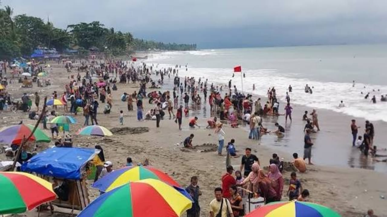 Lenteraindonesia.net I Sukabumi – Memasuki H+2 Lebaran, kawasan wisata pantai di wilayah Palabuhanratu, Kabupaten Sukabumi, dipadati ribuan wisatawan dari berbagai daerah. Pantai Karanghawu menjadi salah satu destinasi favorit yang ramai dikunjungi, dengan area parkir penuh sesak oleh kendaraan wisatawan.
