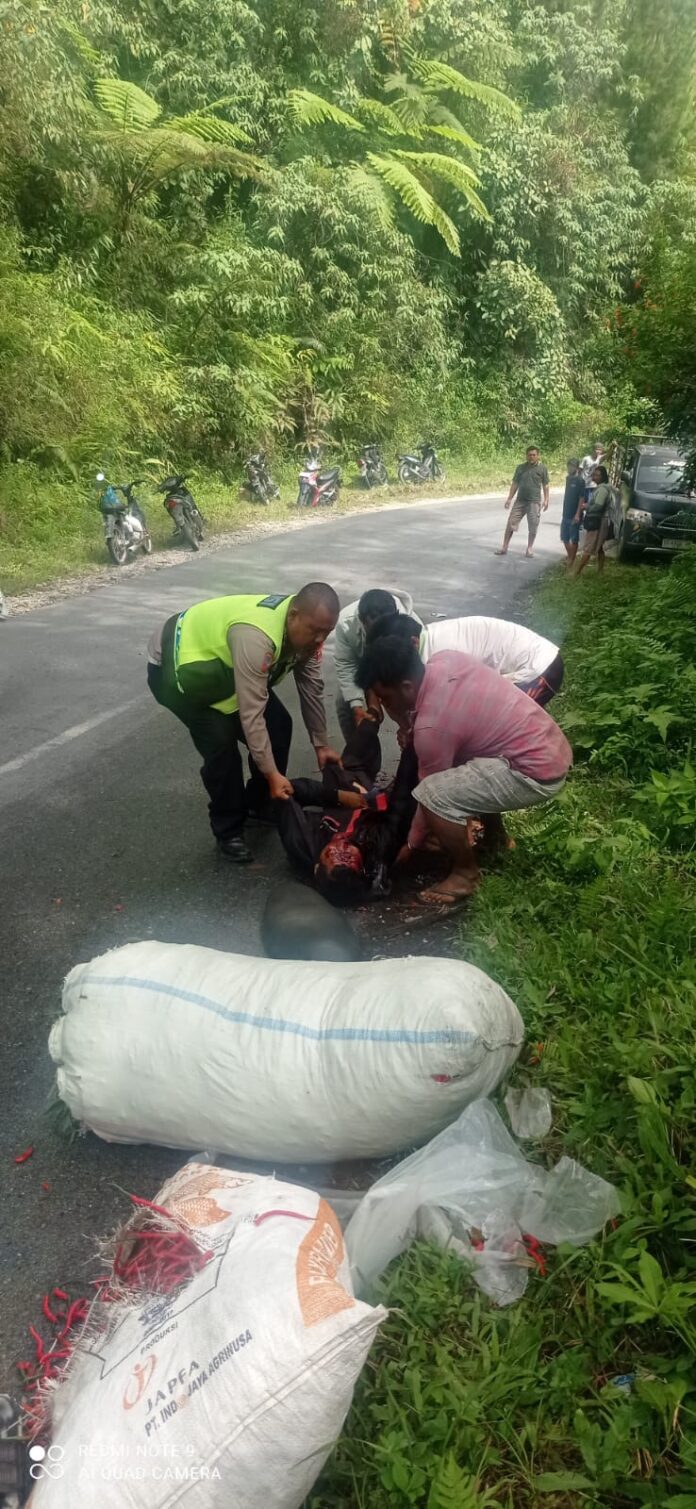 Lenteraindonesia.net, Tapanuli Utara – Diduga pengemudi truck hilang kendali saat melaju dari Sipahutar menuju Siborongborong, mengakibatkan terjadinya kecelakaan dan menabrak pengendara sepeda motor.