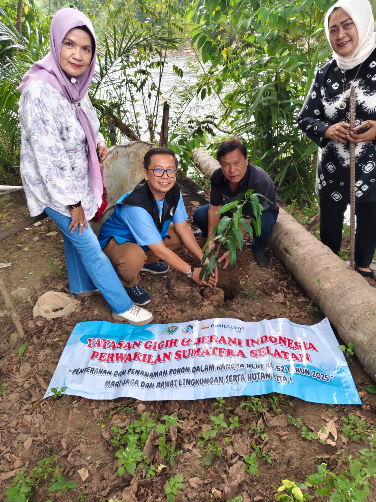 Lenteraindonesia.net | Muara Enim — Dalam rangka memperingati Hari Lingkungan Hidup Sedunia (HLHS) ke-52 Tahun 2025, Yayasan Gigih dan Berani Indonesia (YGBI) Perwakilan Provinsi Sumatera Selatan melaksanakan kegiatan penyerahan dan penanaman ratusan pohon buah-buahan di Desa Keban Agung, Kecamatan Lawang Kidul, Kabupaten Muara Enim, pada Selasa (11/11/2025).