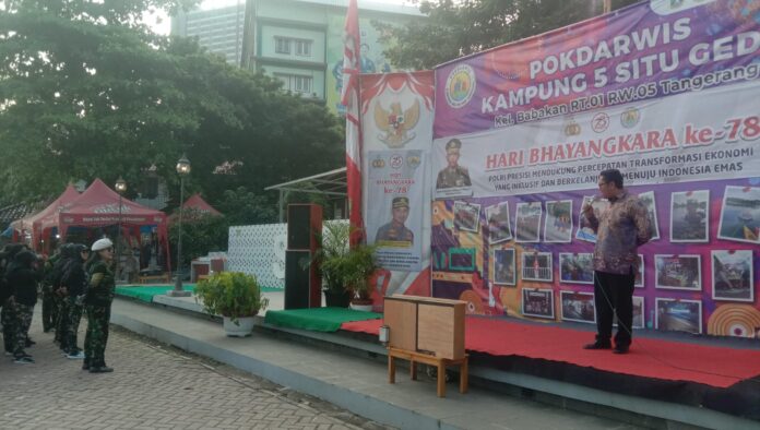 Bertajuk teman ‘Polri Presisi Mendukung Percepatan Transformasi Ekonomi Yang Inklusif Dan Berkelanjutan Menuju Indonesia Emas’. Acara POKDARWIS, dihadiri oleh Maryono Hasan Kepala Satuan Penanggulangan Bencana Maryono Hasan, Mewakili PJ Walikota. Kapolsek Benteng Kota Tangerang, AKP Suyatno, SH. Camat Tangerang, Yudi Pradana. Lurah Babakan. Dan Para Tokoh Kota Tangerang.