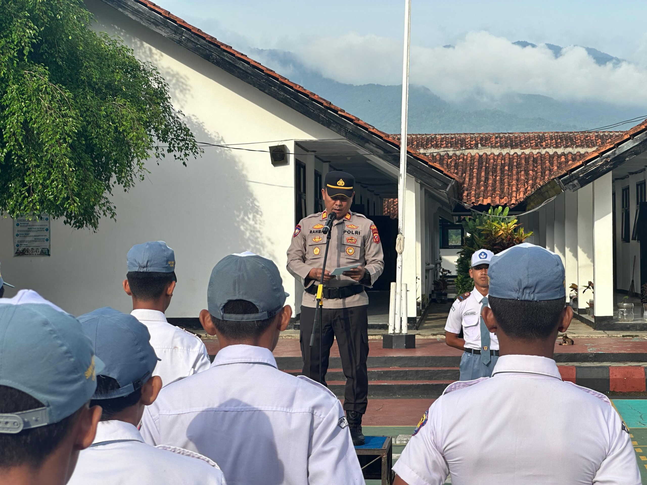 Kasat Binmas Polres Ciamis Polda Jabar AKP Rahmat Komara, S.H., M.H. turun langsung memberikan pembinaan kepada para siswa dan siswi di lapangan upacara sekolah tersebut.