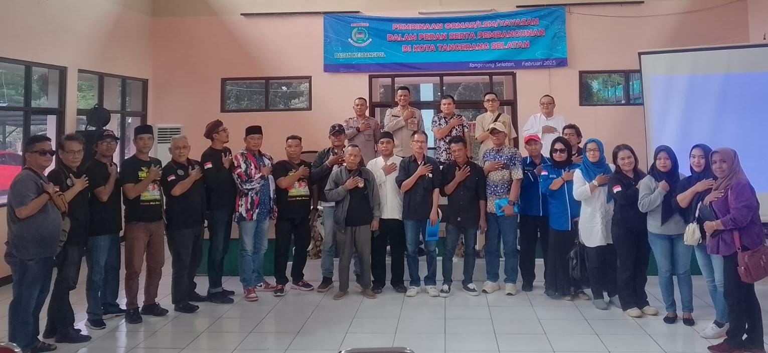 Kasat Binmas Polres Tangerang Selatan, AKP Warno SH MH, didampingi Kanit Binpolmas, IPTU Aifel S. SH, bersama Kesbangpol Kota Tangerang Selatan, melaksanakan pembinaan terhadap Ormas, LSM, yayasan, dan Karang Taruna. Kegiatan ini mengajak semua elemen masyarakat untuk berkolaborasi dalam menjaga situasi Kamtibmas (Keamanan dan Ketertiban Masyarakat) di wilayah hukum Polres Tangerang Selatan.