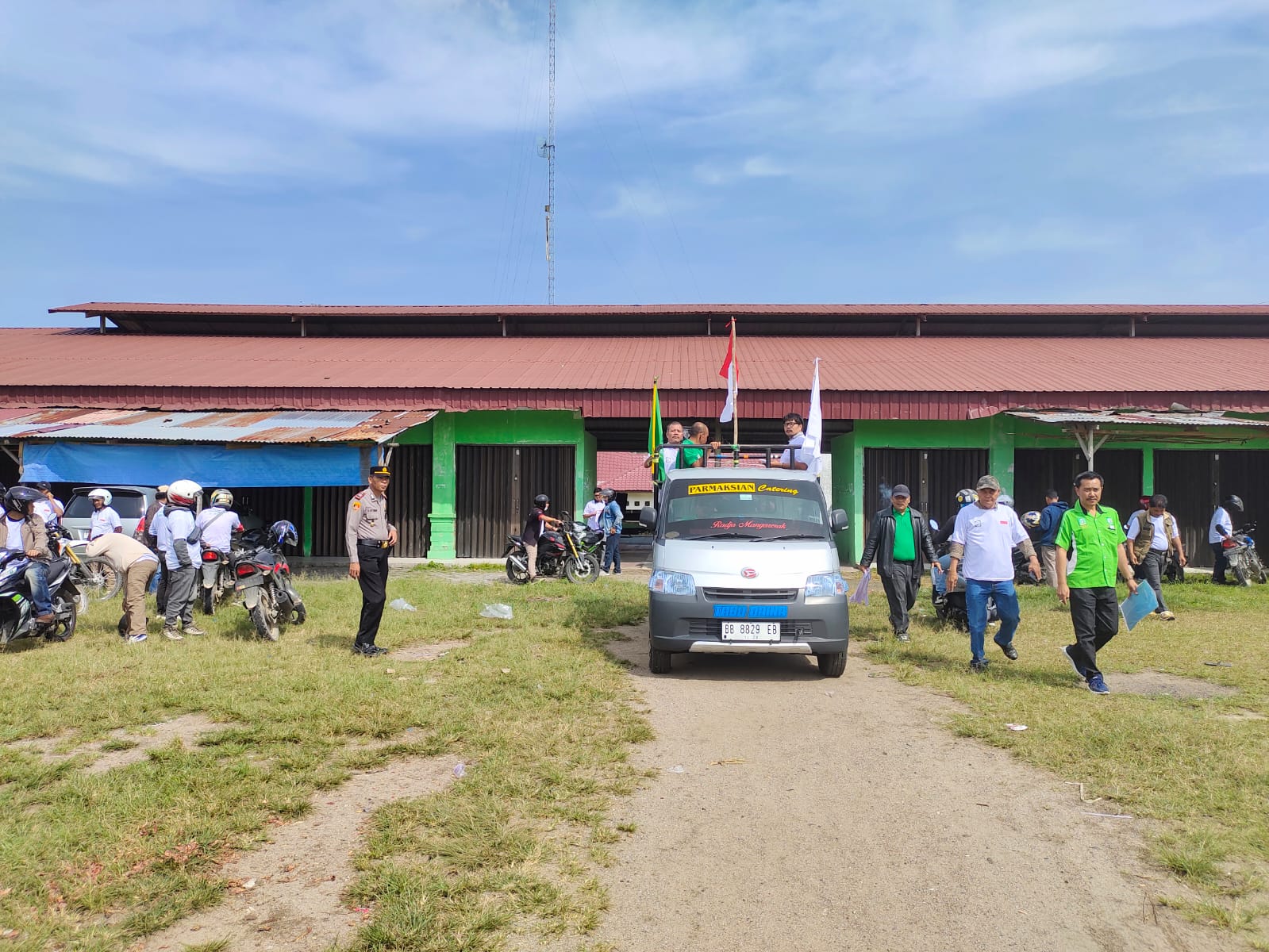 Alat peraga yang digunakan yaituDua unit Mobil Pick up No Pol BBM 8839 EB/BK 8818 LT, Bendera merah putih, Spanduk, Pengeras suara dan Bendera PK-KSBSI.