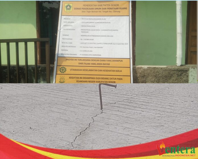 Lenteraindonesia.net, Bogor – Proyek Rekontruksi Jalan Jalan Ciapus – Sukamantri, Kecamatan Tamansari yang dibiayai APBD Kabupaten Bogor, sebesar Rp1,3 miliar patut dipertanyakan.