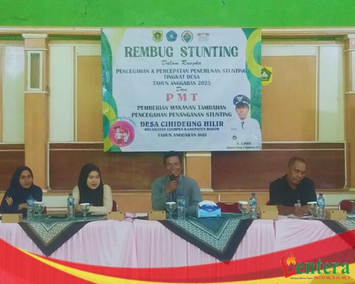 Lenteraindonesia.net | Bogor — Pemerintah Desa Cihideung Ilir, Kecamatan Ciampea, Kabupaten Bogor, menggelar kegiatan Rembug Stunting dan Pemberian Makanan Tambahan (PMT) sebagai bagian dari upaya pencegahan serta percepatan penurunan angka stunting di tingkat desa. Kegiatan ini berlangsung pada Kamis (24/07/2025) di Aula Kantor Desa Cihideung Ilir.
