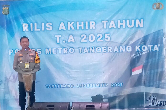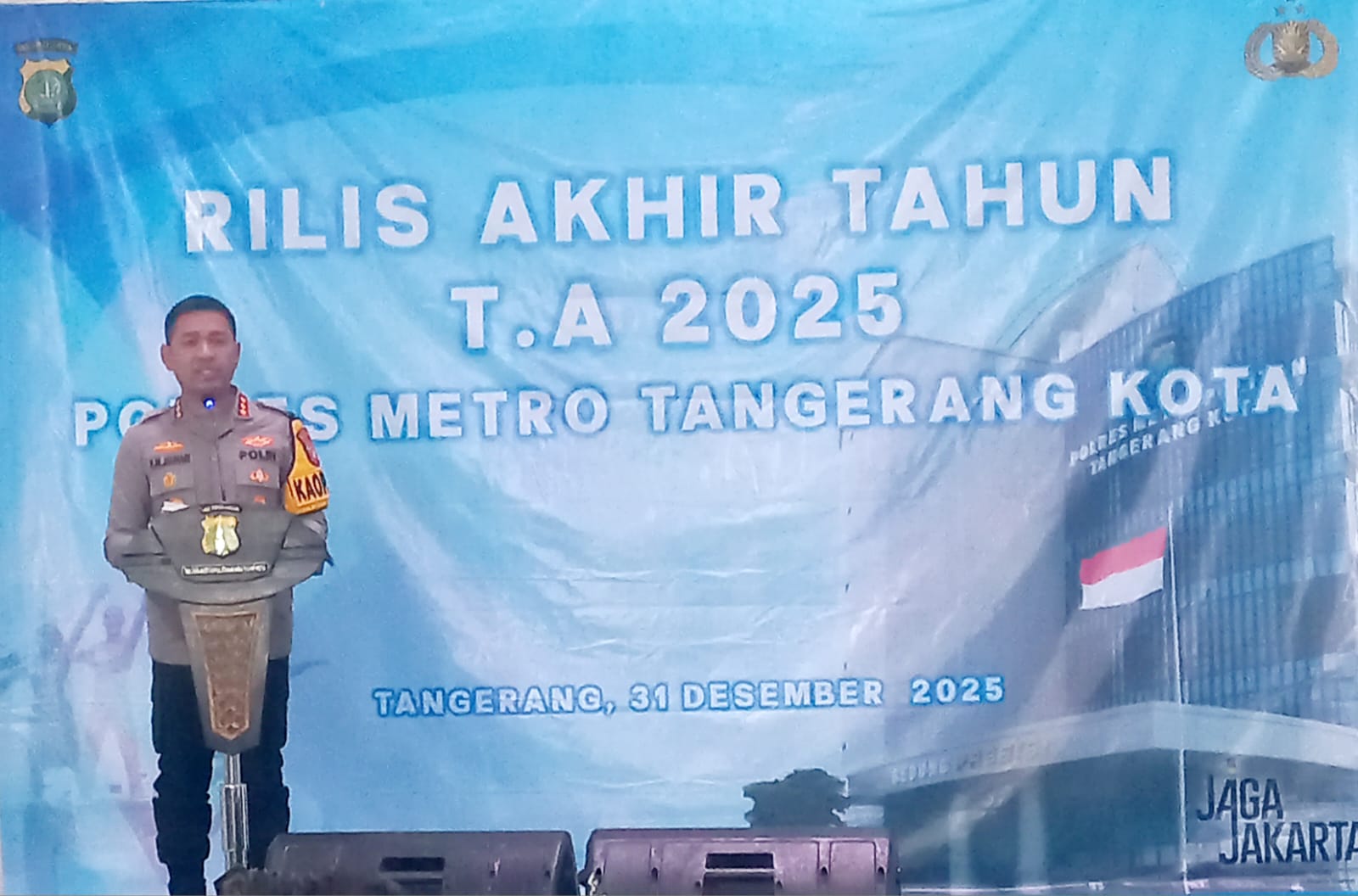 Lenteraindonesia.net | Kota Tangerang — Polres Metro Tangerang Kota menggelar Rilis Akhir Tahun 2025 di Mapolres Metro Tangerang Kota, Rabu (31/12/2025). Kegiatan tahunan ini menjadi ajang evaluasi menyeluruh terhadap situasi kamtibmas, penegakan hukum, dan pelayanan kepolisian sepanjang tahun 2025 di wilayah Kota Tangerang.