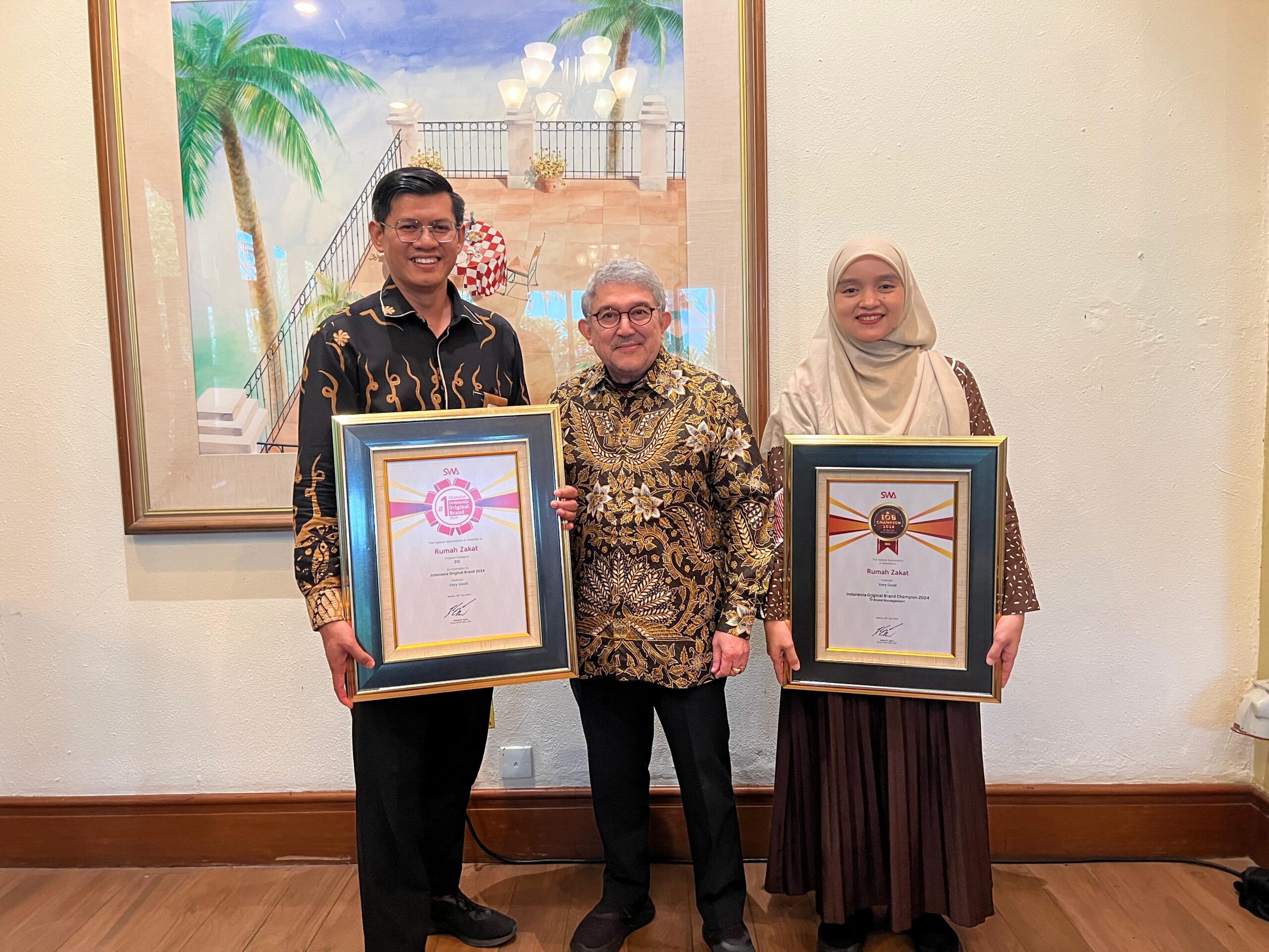 Di Tahun ini, Rumah Zakat mendapatkan 2 penghargaan sekaligus. Pada penghargaan pertama, Rumah Zakat menjadi original brand untuk kategori lembaga ZIZ (Zakat Infaq Shodaqoh) dengan raihan predikat very good.