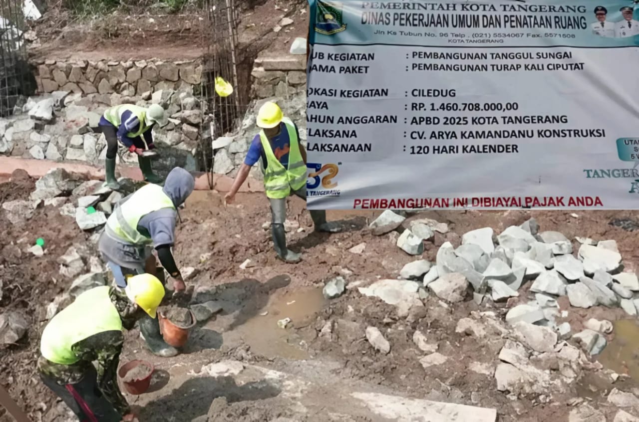 Berdasarkan pantauan dari awal media, Pembangunan Turap Kali Ciputat berusumber dari APBD tahun 2025 Pemkot Tangerang, Bidang Tata Air Dinas PUPR Kota Tangerang, dengan anggaran Rp. 1,460,708,000,00,- dengan kontraktor CV Arya Kamandanu Kontruksi sudah sesuai dengan spek yang ada.