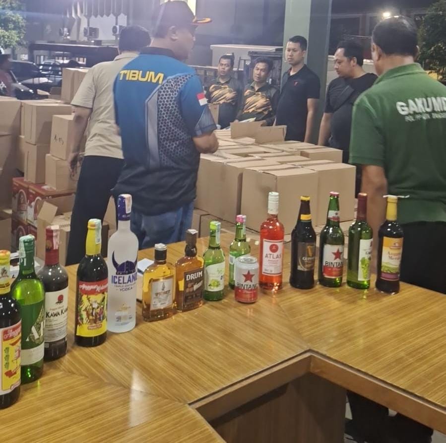 Dalam kegiatan itu, petugas berhasil menyita ratusan dus yang berisi minuman keras dari berbagai merek, dan mengamankan seorang pemilik berinisial S.