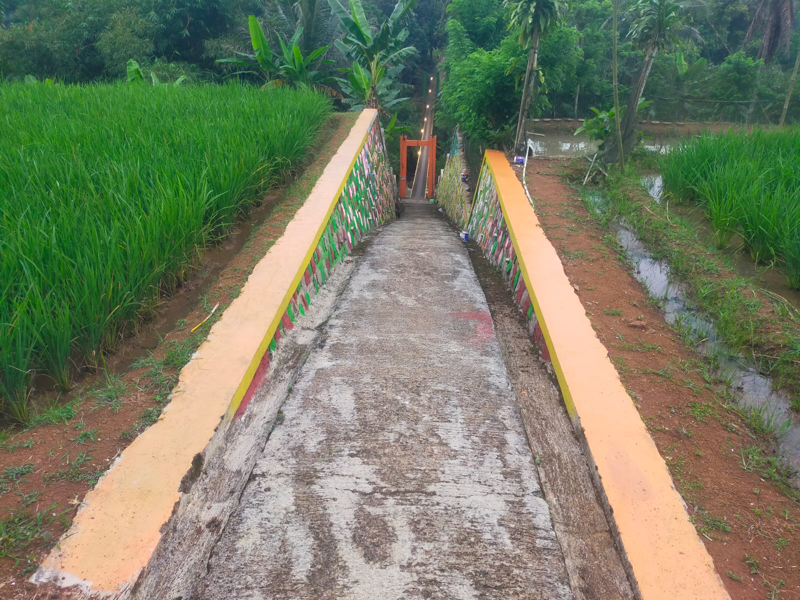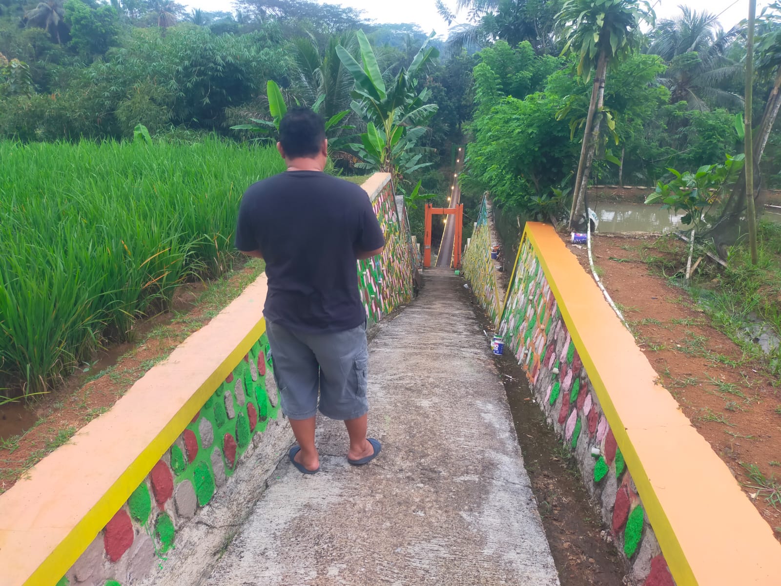 Menariknya, proses pengerjaan tidak hanya dilakukan oleh tenaga tukang, tetapi juga melibatkan partisipasi warga melalui kegiatan gotong royong. Hampir seluruh biaya pengecatan dan perbaikan jembatan tersebut ditanggung langsung oleh IP.