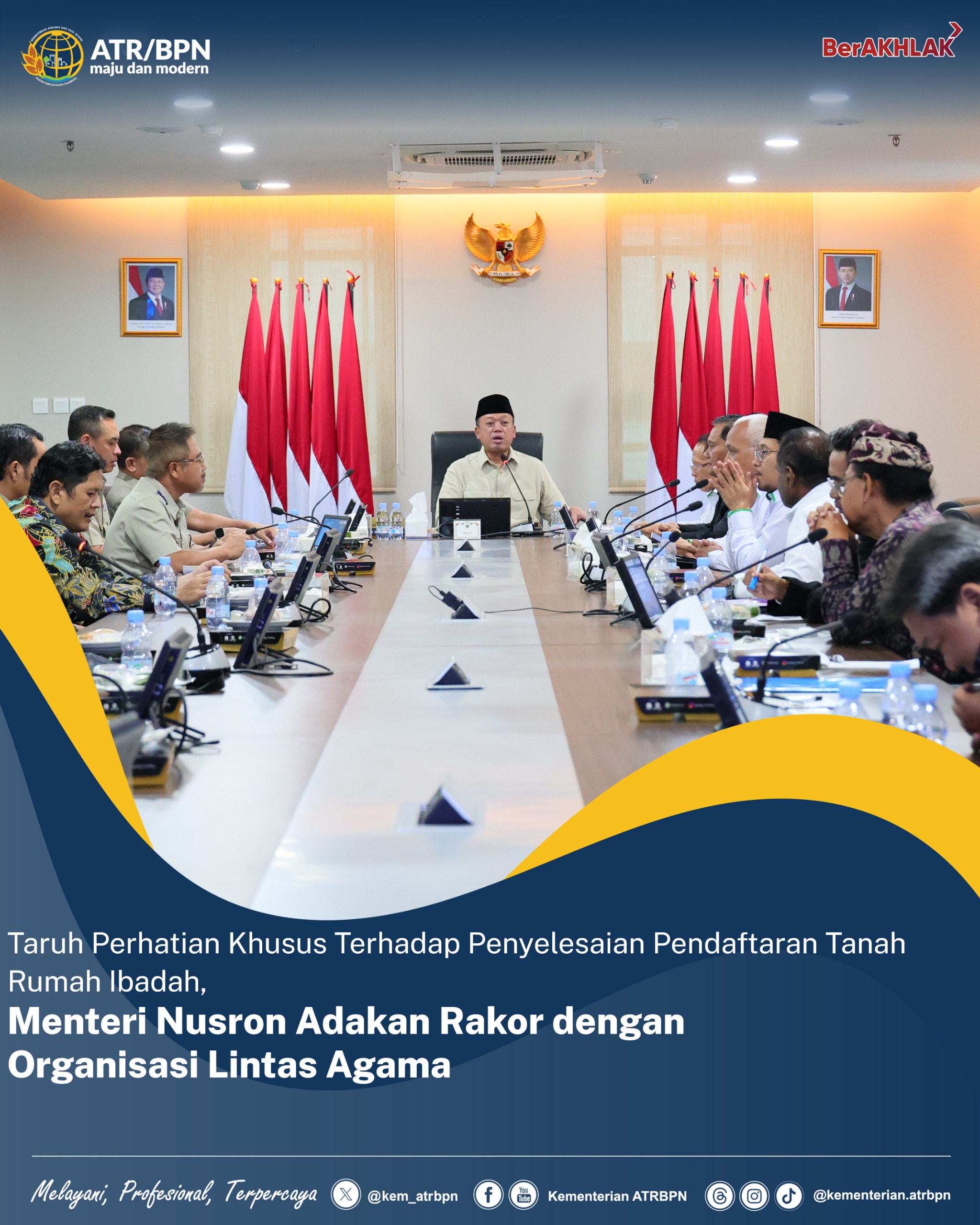 “Penting untuk setiap rumah ibadah memiliki sertipikat, agar ada kepastian hukumnya. Banyak yang merasa sudah sah, tapi kalau tidak ada sertipikatnya, tentu belum sah,” tegas Menteri Nusron dalam Rakor yang berlangsung di Ruang Rapat 401, Kementerian ATR/BPN, Jakarta.