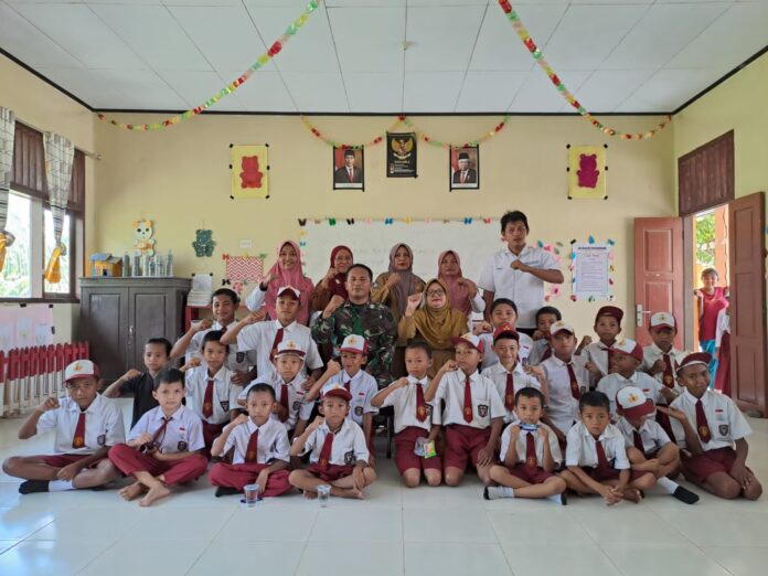 Dalam kegiatan yang berlangsung hari ini Senin 27 Mei 2024, Anggota Satgas TMMD Kodim 1307/Poso, Sertu Muh Syafri menjadi pemateri yang memberikan materi wawasan kebangsaan kepada kurang lebih 70 orang siswa.