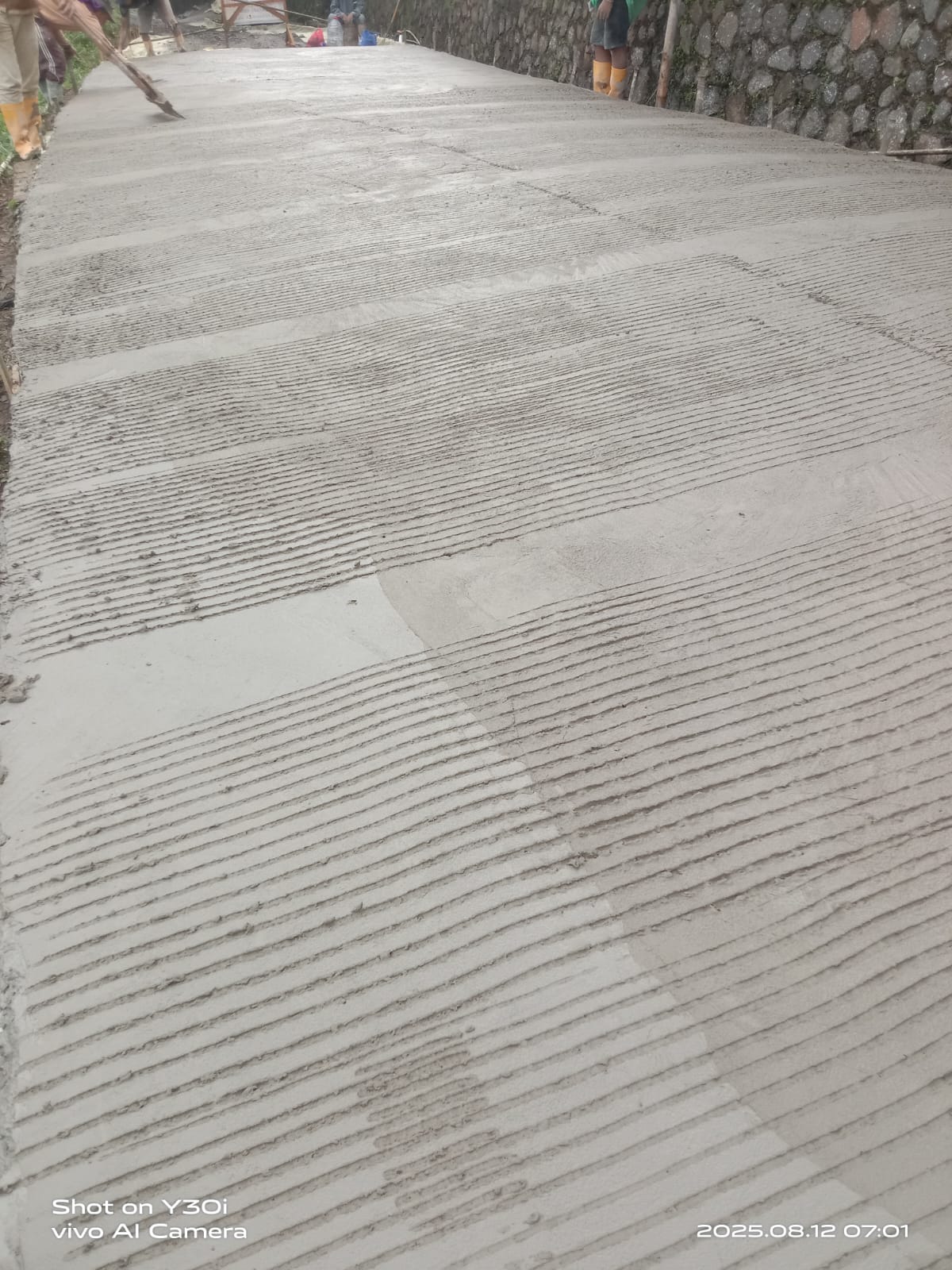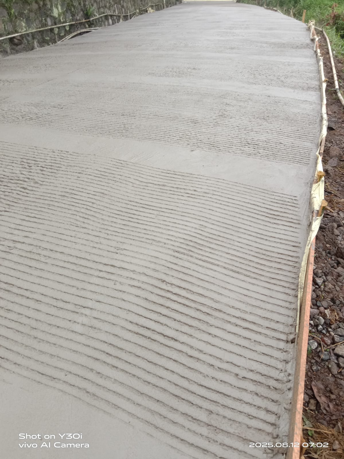 “Alhamdulillah, kami telah melaksanakan pembangunan betonisasi jalan dengan volume tahap I Panjang 588 m, Lebar variasi 3-4 m, dan Tinggi 0,15 m, melibatkan warga melalui swadaya masyarakat. Mereka terjun langsung membantu mulai dari pembersihan jalan, pengecoran, pemasangan bagesting, hingga pengawalan mobilisasi kendaraan berat bermuatan cor beton,” ujarnya.