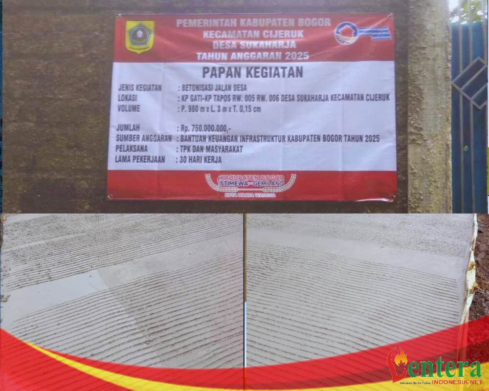 Lenteraindonesia.net | Bogor — Pemerintah Desa Sukaharja, Kecamatan Cijeruk, merealisasikan pembangunan betonisasi jalan desa yang dibiayai oleh Bantuan Keuangan (Bankeu) Infrastruktur Desa atau Samisade Tahun 2025. Jum’at (15/ 08/25).