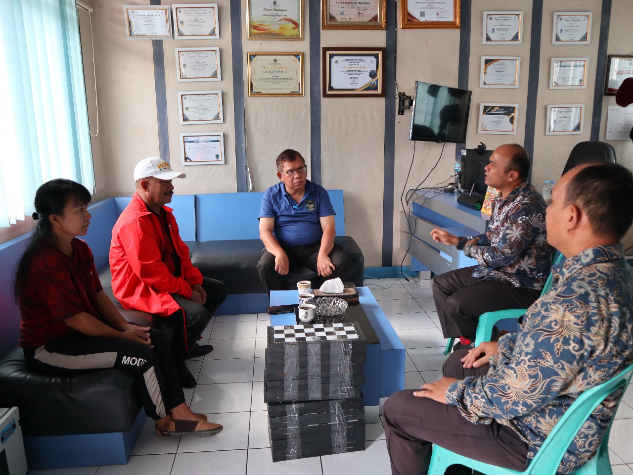 Kepala Rutan Kelas IIB Tarutung, Ismet Sitorus mengucapkan terima kasih kepada Yayasan Nelson Pandapotan Sitompul (NPS) yang didampingi oleh Kepala Dinas Pemuda dan Olahraga Kabupaten Tapanuli Utara yang sudah memberikan Bantuan sebanyak 10 (sepuluh) Buah Catur bagi Warga Binaan Rumah Tahanan Negara Kelas IIB Tarutung.